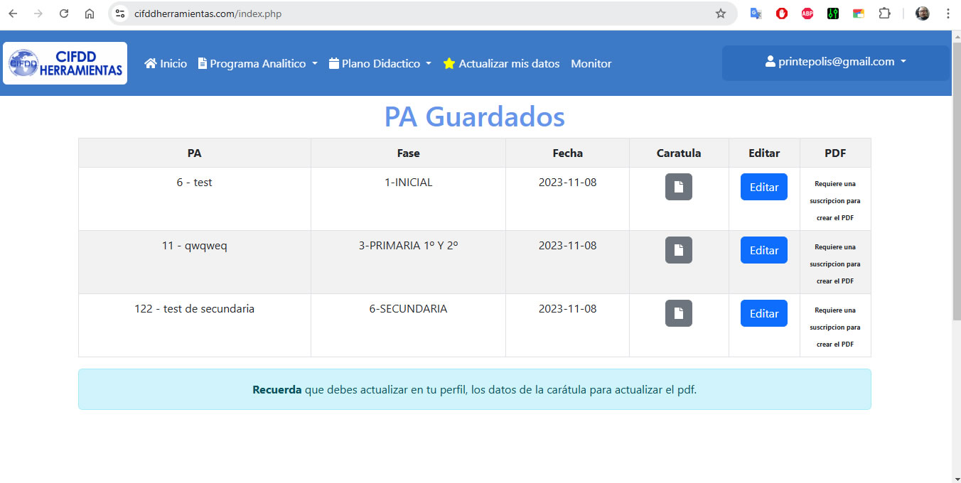 Desarrollo de una plataforma con las herramientas para crear las planeaciones didácticas que requieren los profesores para su uso escolar; toma con base de datos extractos de los libros de texto autorizados. Actualmente es una plataforma usada por un porcentaje importante del magisterio. Utilice php 7.3 y mysql