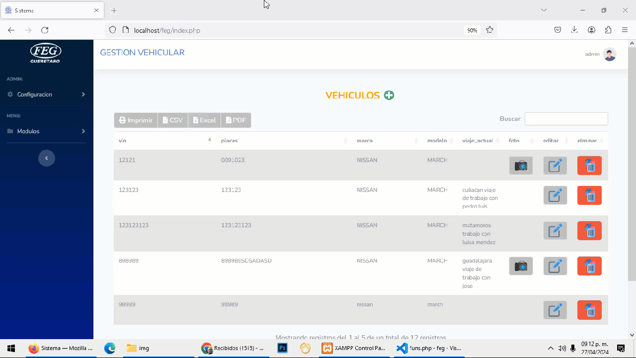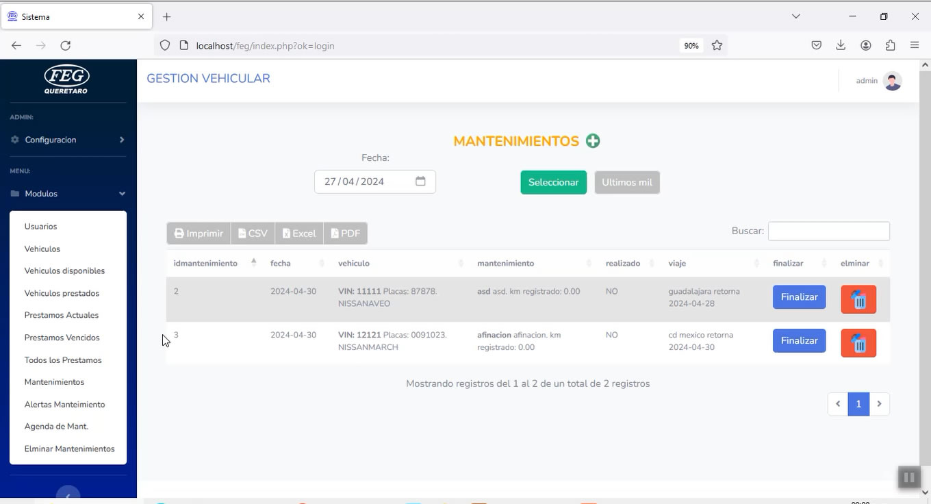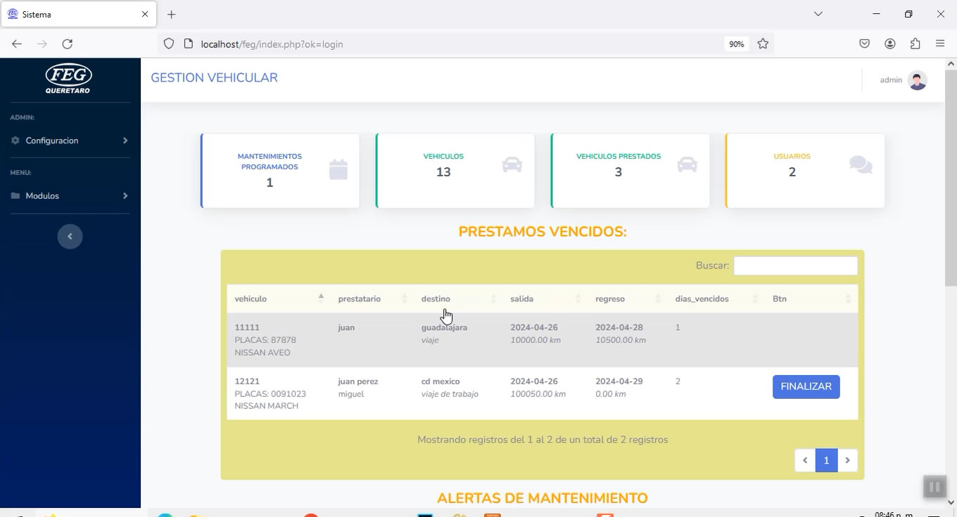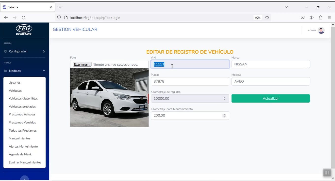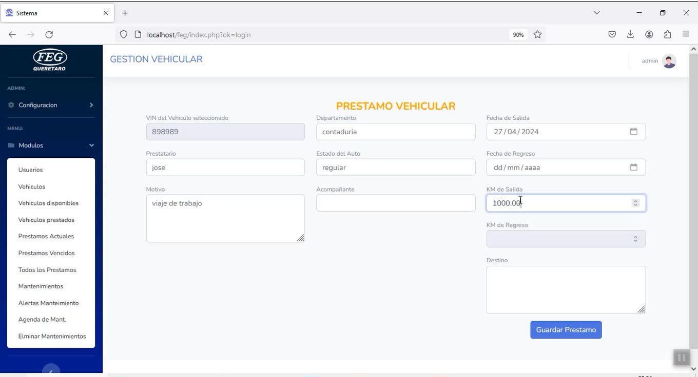 Un sistema web usado en la intranet de la empresa para gestionar el préstamo de los autos, destinos, kilometrajes y mantenimientos.