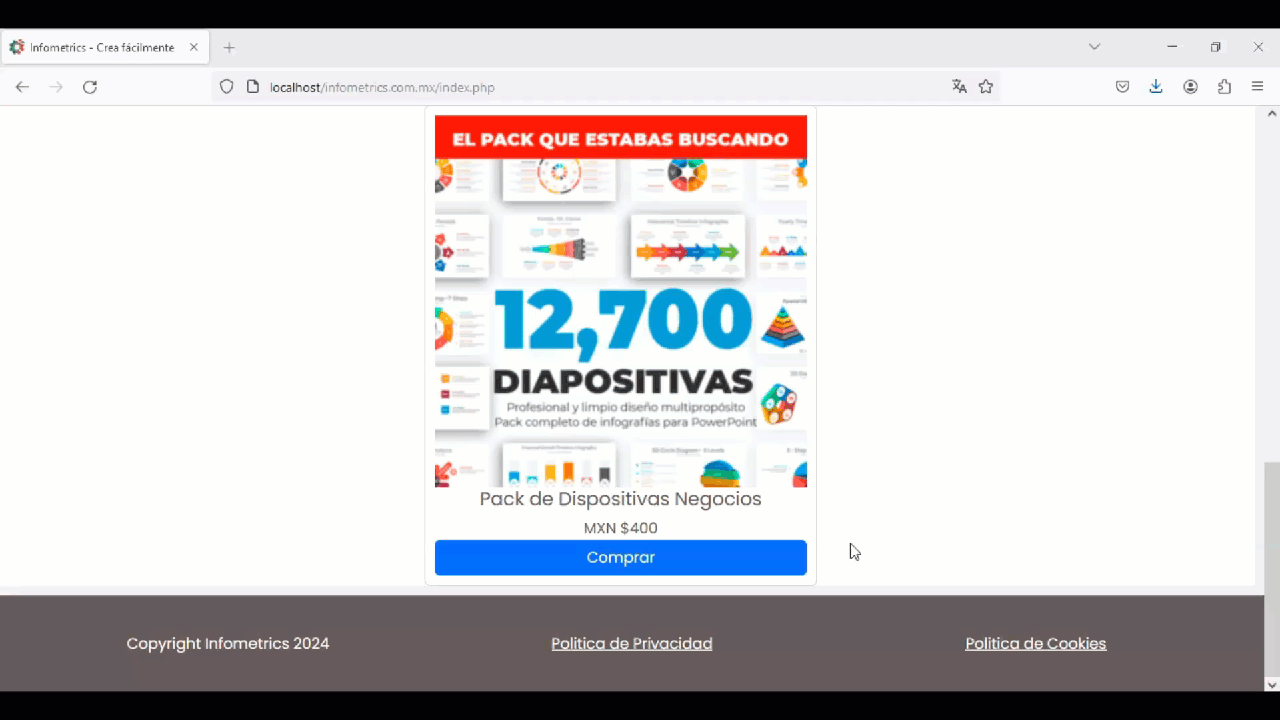 Esta fue una página web creada para la venta de plantillas de power point, con pagos por paypal y gestion de productos. Programada sin framework, php 7.4, mysql y jquery