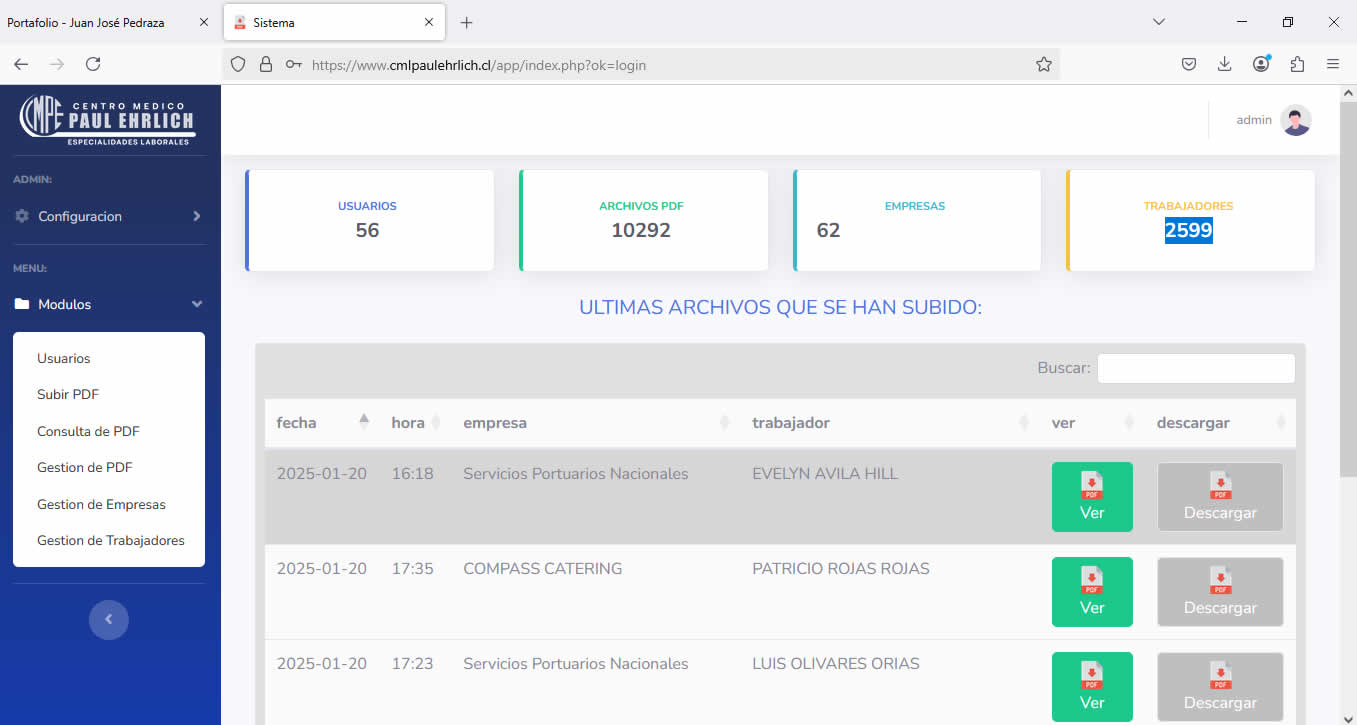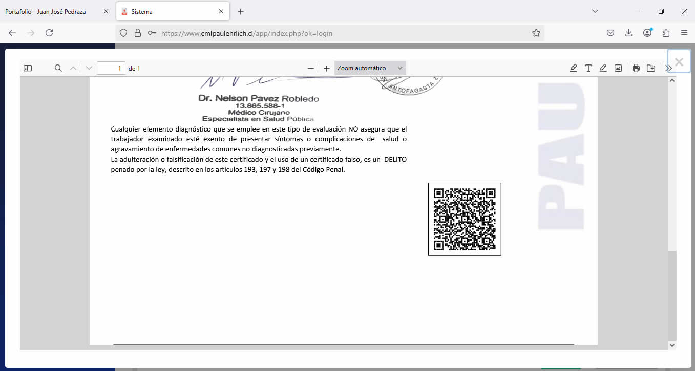 Este fue una página web con un sistema web para foliar archivos pdf. La app lee un pdf y le agrega un código QR con un link de validación del archivo; de esta manera cuando el cliente lo imprime podran escanear el QR para validar su autenticidad, evitando con esto falsificaciones de los análisis de los trabajadores. El aplicativo tiene la gestión de las empresas para otorgarles usuarios vinculados a la misma y puedan consultar y descargar los archivos de los análisis; agilizando el trabajo por parte del centro médico en la dispersión de los archivos. Actualmente cuenta con 62 empresas, 2600 trabajadores y mas de 10300 archivos en actividad. Lo programe en php 8.2, mysql, jquery, boostrap.