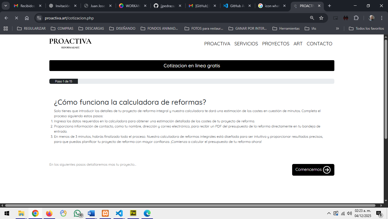 Un proyecto de calculadora de presupuestos para remodelaciones de residencias, basado en una formulario interactivo el usuario va seleccionando varios puntos, al final la plataforma envia un correo del presupuesto. Sobre wordpress, php y mysql