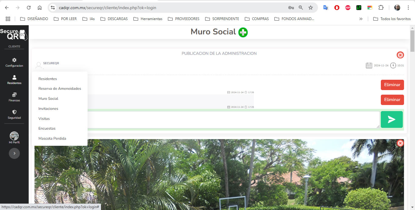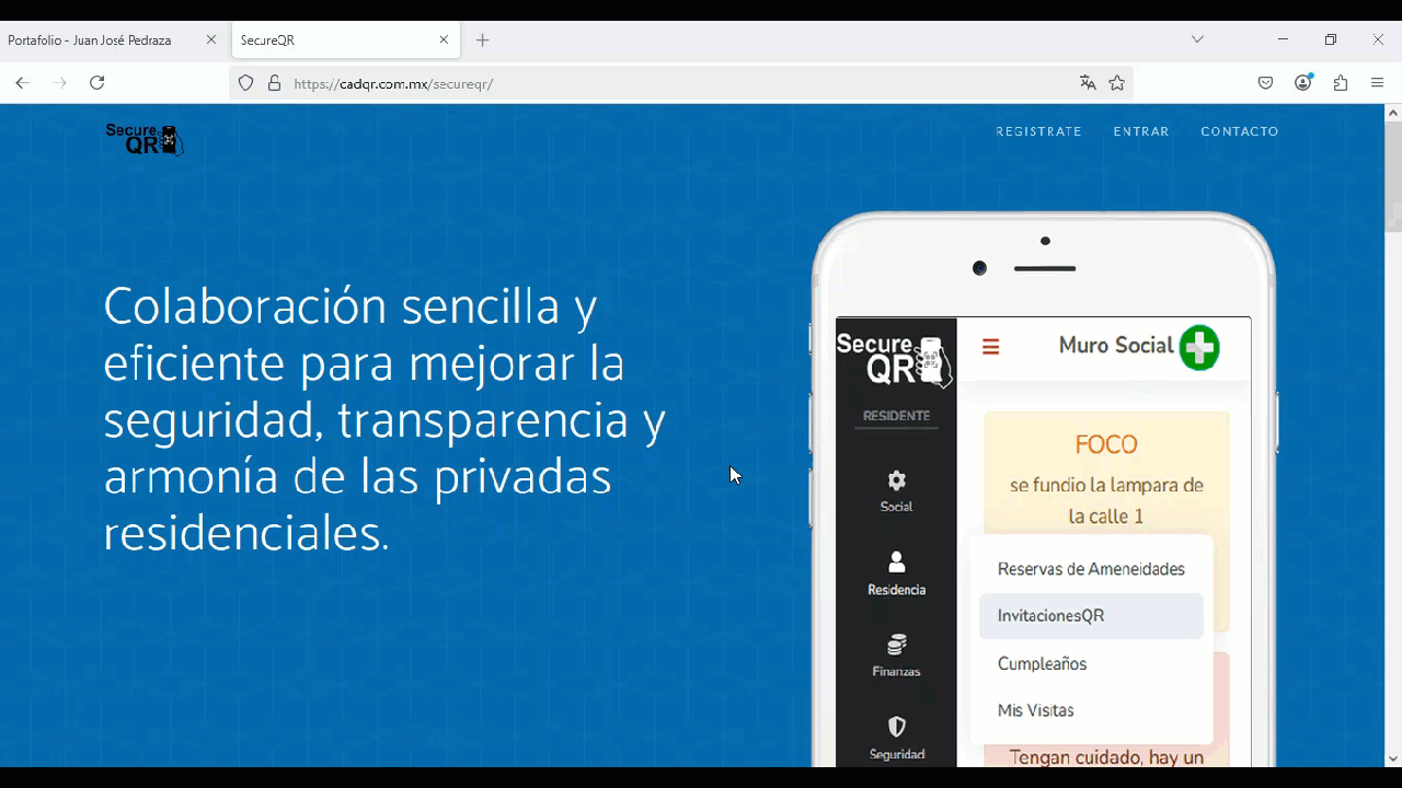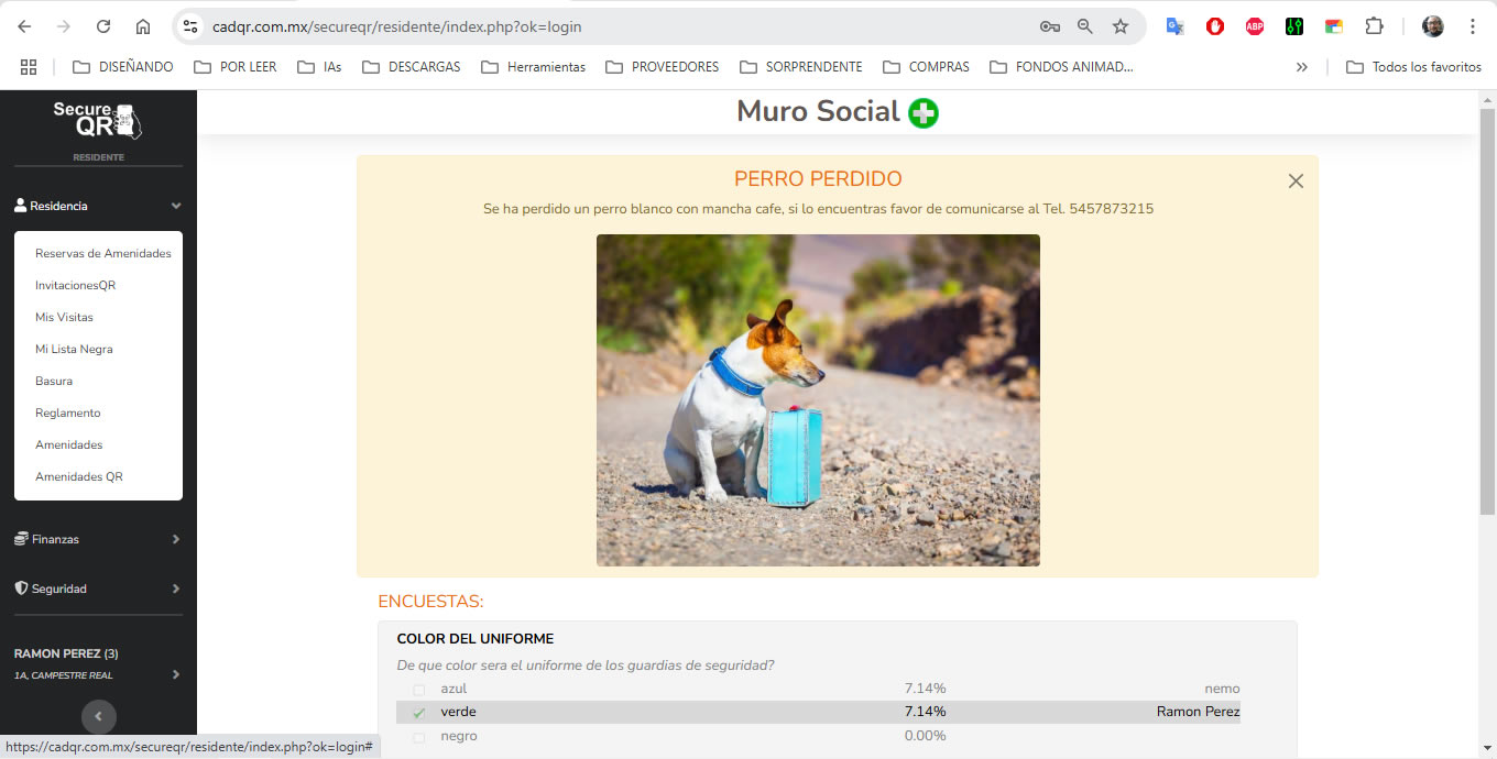 Es una aplicación tipo SAS para la gestión de residencias, donde por medio de una membresía el cliente puede registrarlas, así como a sus residentes y equipo de seguridad. Entre las características que tiene es muro social, alertas, gestión de pagos, encuestas, invitaciones qr, los guardias pueden escaner con la cámara del celular la invitación, entre muchas otras con las que cuenta. El proyecto lo programe en php 8.2, mysql, jquery; use libreria bootstrap, sweetalert2 y un dashboard sbadmin
