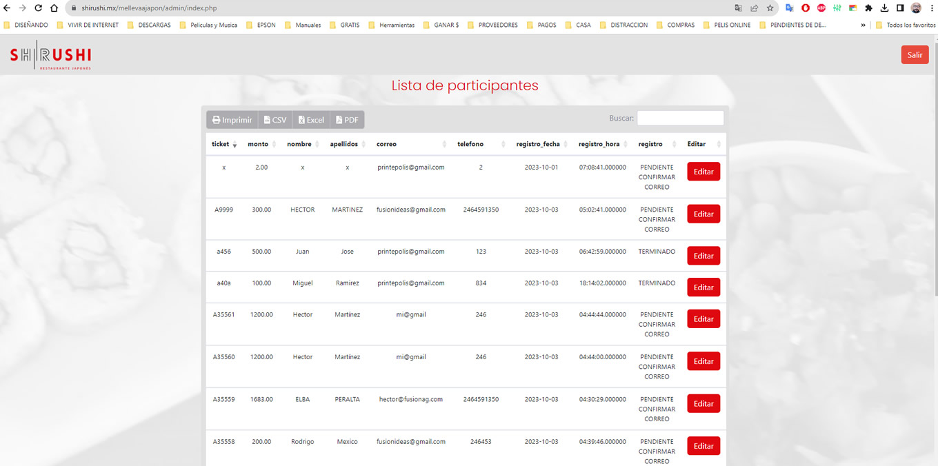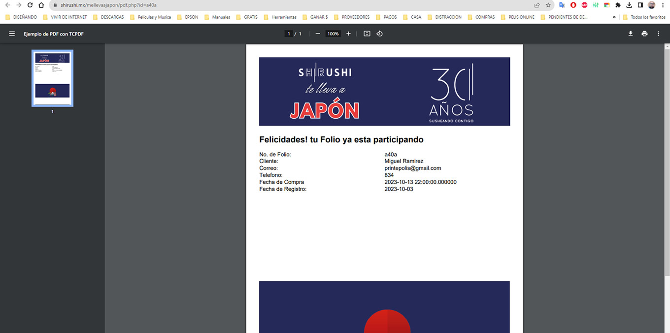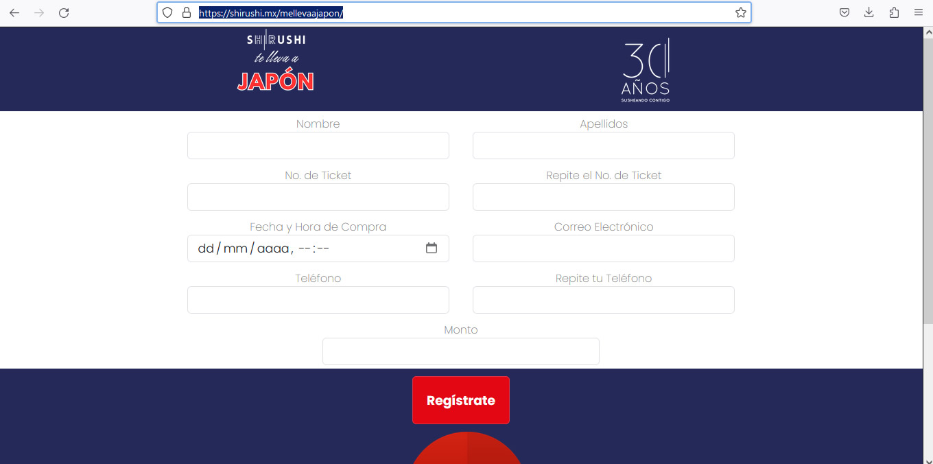 Diseño de la app web para el registro del concurso de "Shirushi me lleva Japón " del 30 aniversario de la cadena de restaurantes Shirushi. Se creo tanto el registro, como el envio del ticket a través de correo. Además de un panel para la gestión de los registros. Use php 7.4 y mysql.
