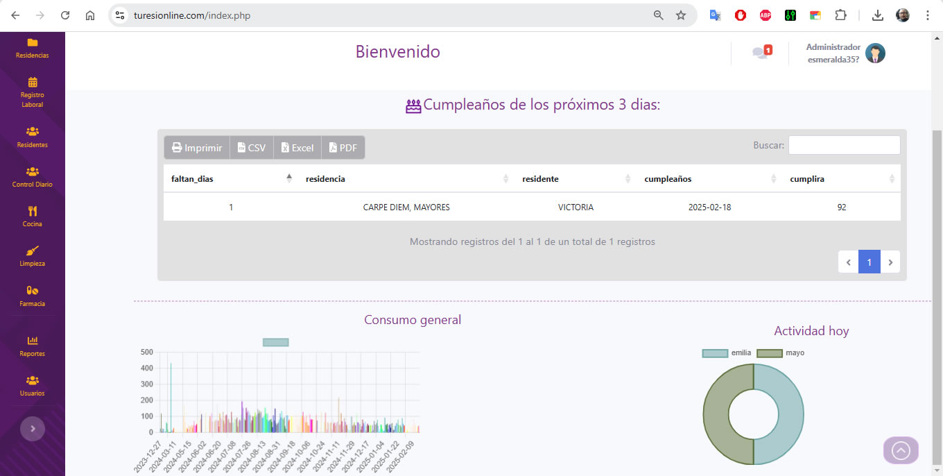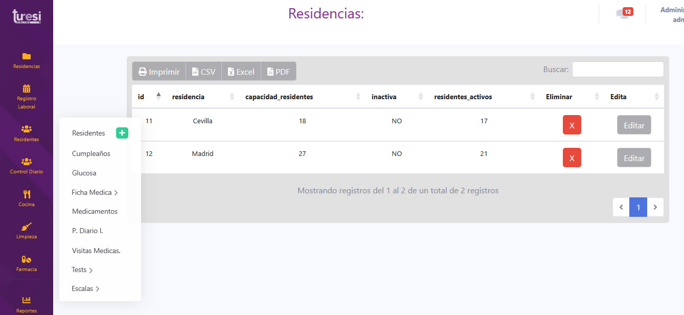 Una plataforma para la gestión de residencias para ancianos donde se pueden gestionar múltiples residencias, residentes, así como la administración de la farmacia, cocina, menús, incidencias, chat y muchos otros aspectos esenciales para este tipo de empresa. Lo programe en php 7.4, mysql y jquery.