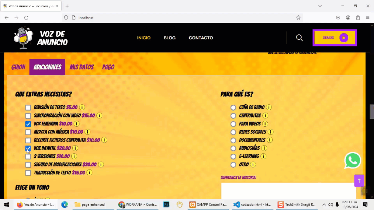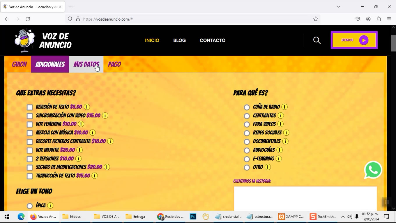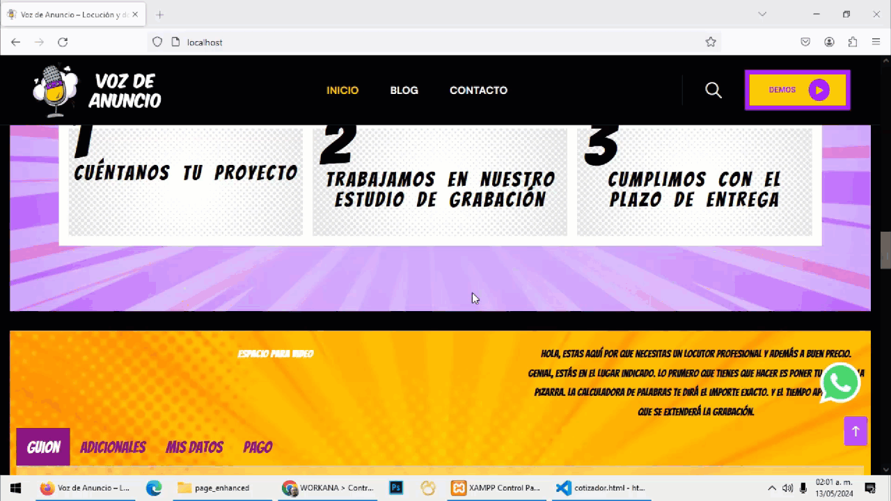 Esta es una página web realizada en wordpress donde desarrolle un cotizador cuya caracteristicas era contar las palabras del anuncio asi como algunos servicios adicionales, ofreciendo el pago por medio de Paypal. Asi como un panel para la gestion de esos registros y pagos. Use php 7.4 y mysql